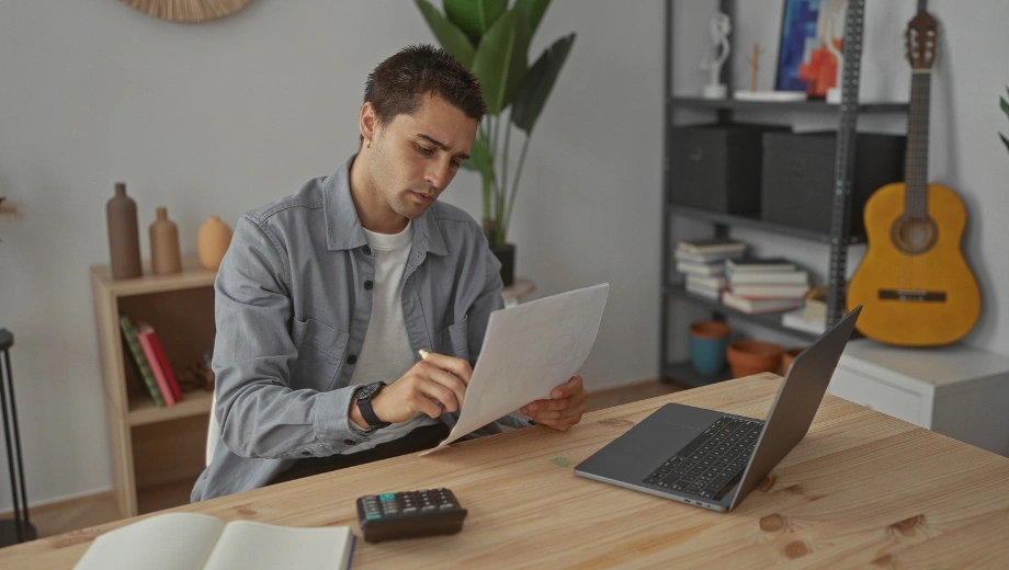 Image of a man sitting at a desk with his laptop, reviewing an insurance application -Does St. Luke's Health Plan Cover Addiction Treatment in Idaho - Icarus Wellness and Recovery